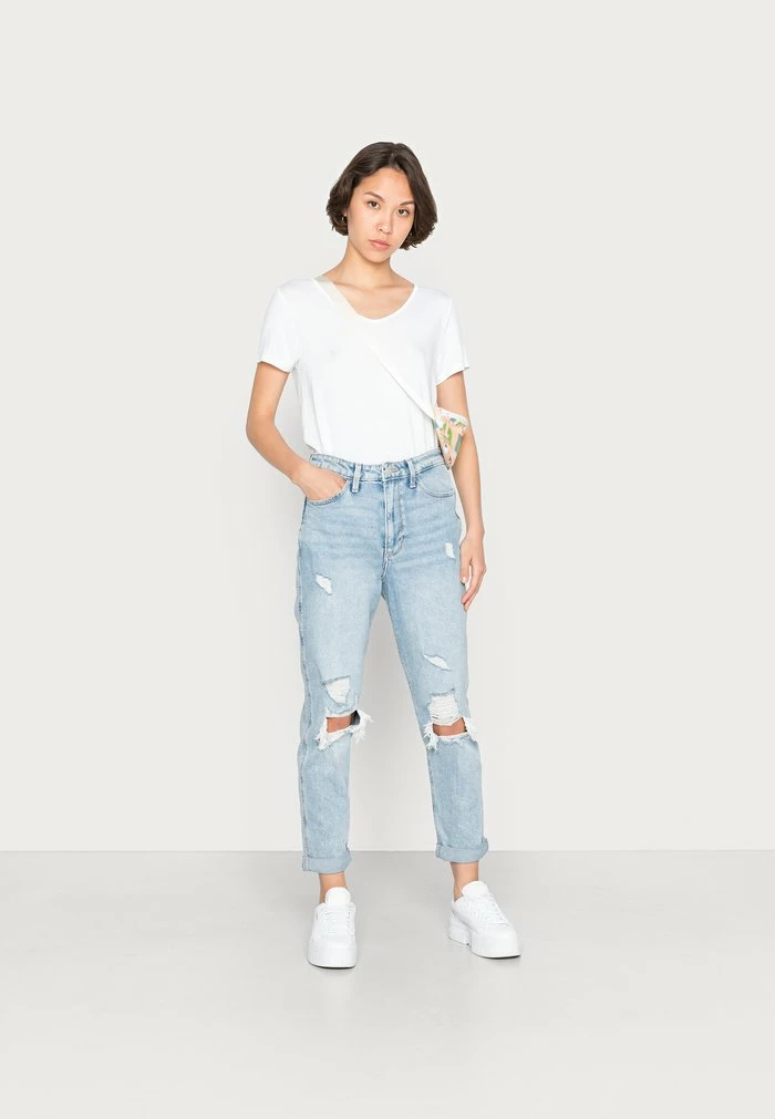 - Neckline: Low-cut v-neck