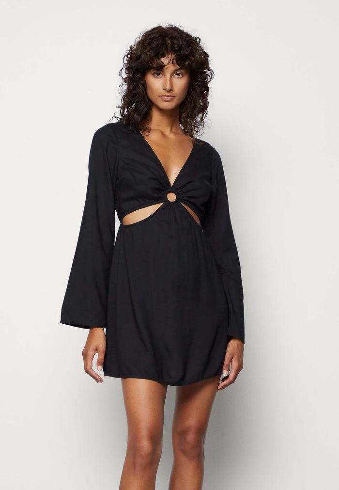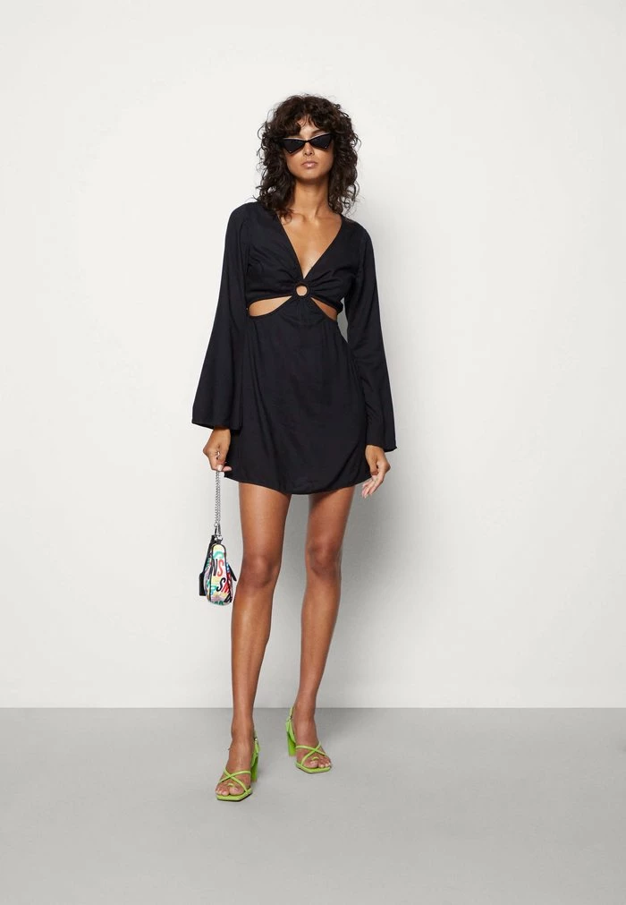 - Neckline: Low-cut v-neck