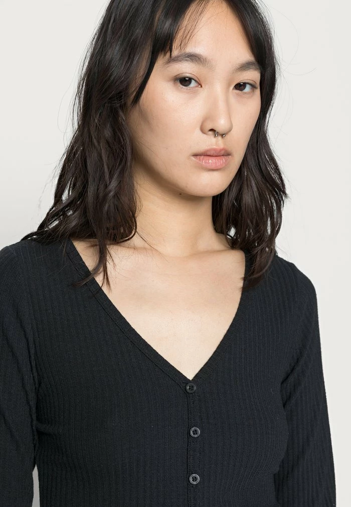 - Neckline: Low-cut v-neck